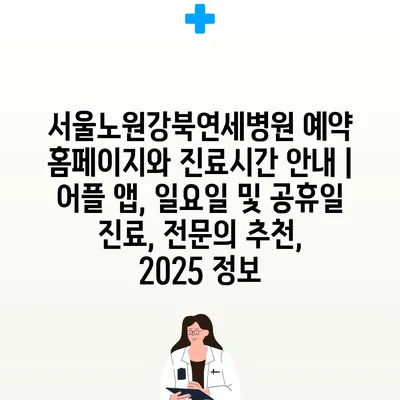서울노원강북연세병원 예약 홈페이지와 진료시간 공지 | 어플 앱, 일요일 및 공휴일 진료, 전연락 추천, 2025 정보 에 대해 자주 묻는 질문 TOP 5