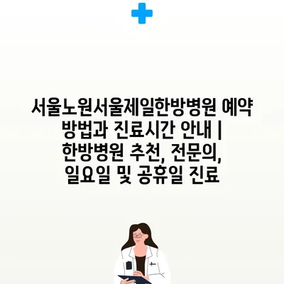✅ 서울노원서울제일한방병원 예약 방법을 쉽게 알아보세요.