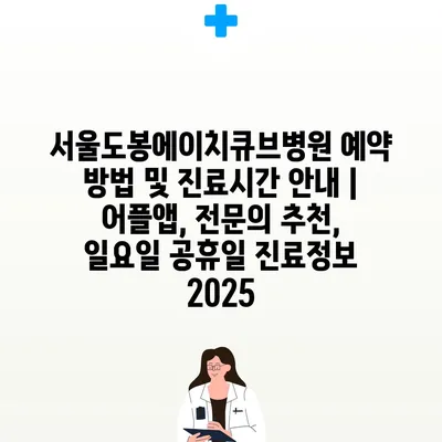 서울도봉에이치큐브병원 예약 방법 및 진료시간 공지 | 어플앱, 전연락 추천, 일요일 공휴일 진료정보 2025 에 대해 자주 묻는 질문 TOP 5