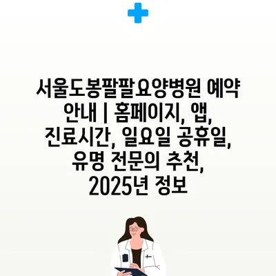 서울도봉팔팔요양병원 예약 안내 | 홈페이지, 앱, 진료시간, 일요일 공휴일, 유명 전문의 추천, 2025년 정보