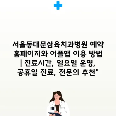서울동대문삼육치과병원 예약 홈페이지와 어플앱 이용 방법 | 진료시간, 일요일 운영, 공휴일 진료, 전연락 추천에 대해 자주 묻는 질문 TOP 5