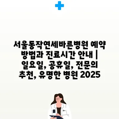 ✅ 서울동작연세바른병원의 진료시간 및 예약 방법을 자세히 알아보세요.