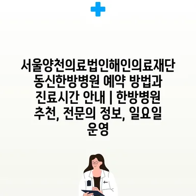 서울양천의료법인해인의료재단 동신한방병원 예약 방법과 진료시간 공지 | 한방병원 추천, 전연락 정보, 일요일 운영 에 대해 자주 묻는 질문 TOP 5
