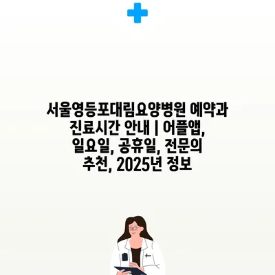 서울영등포대림요양병원 예약과 진료시간 안내 | 어플앱, 일요일, 공휴일, 전문의 추천, 2025년 정보