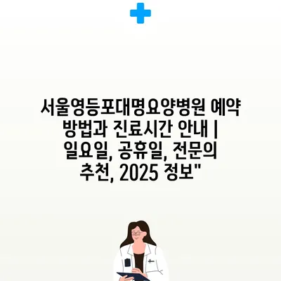 서울영등포대명요양병원 예약 방법과 진료시간 공지 | 일요일, 공휴일, 전연락 추천, 2025 정보에 대해 알아보겠습니다.