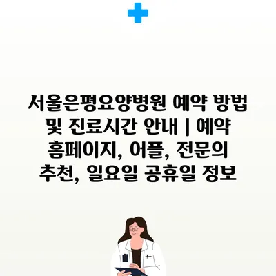 서울은평요양병원 예약 방법 및 진료시간 안내 | 예약 홈페이지, 어플, 전문의 추천, 일요일 공휴일 정보