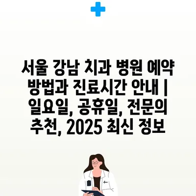 서울 강남 치과 병원 예약 방법과 진료시간 공지 | 일요일, 공휴일, 전연락 추천, 2025 최신 정보 에 대해 자주 묻는 질문 TOP 5