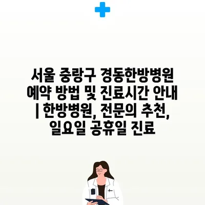✅ 서울 중랑구 경동한방병원의 진료시간과 예약 방법을 자세히 확인해 보세요.