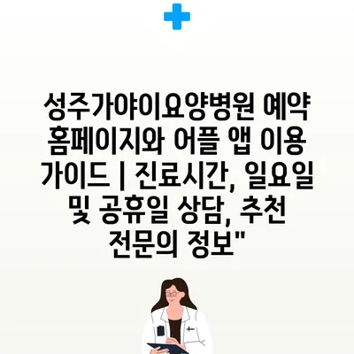 성주가야이요양병원 예약 홈페이지와 어플 앱 이용 가이드 | 진료시간, 일요일 및 공휴일 상담, 추천 전문의 정보”