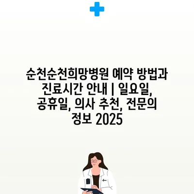 순천순천희망병원 예약 방법과 진료시간 공지 | 일요일, 공휴일, 의사 추천, 전연락 정보 2025에 대해 알아보겠습니다.