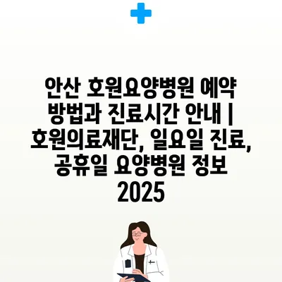 안산 호원요양병원 예약 방법과 진료시간 공지 | 호원의료재단, 일요일 진료, 공휴일 요양병원 정보 2025 에 대해 자주 묻는 질문 TOP 5