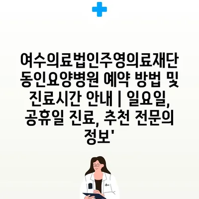 여수의료법인주영의료재단 동인요양병원 예약 방법 및 진료시간 공지 | 일요일, 공휴일 진료, 추천 전연락 정보’에 대해 자주 묻는 질문 TOP 5