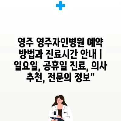 ✅ 영주자인병원의 진료시간과 예약 방법을 자세히 알아보세요.
