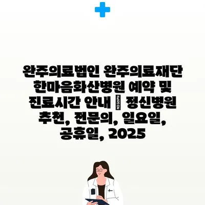 완주의료법인 완주의료재단 한마음화산병원 예약 및 진료시간 공지 | 정신병원 추천, 전연락, 일요일, 공휴일, 2025 에 대해 자주 묻는 질문 TOP 5