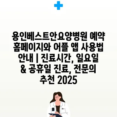 용인베스트안요양병원 예약 홈페이지와 어플 앱 사용법 공지 | 진료시간, 일요일 & 공휴일 진료, 전연락 추천 2025 에 대해 자주 묻는 질문 TOP 5