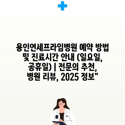용인연세프라임병원 예약 방법 및 진료시간 안내 (일요일, 공휴일) | 전문의 추천, 병원 리뷰, 2025 정보”