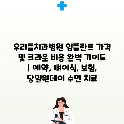 우리들치과병원 임플란트 가격 및 크라운 비용 완벽 가이드 | 예약, 뼈이식, 보험, 당일원데이 수면 치료