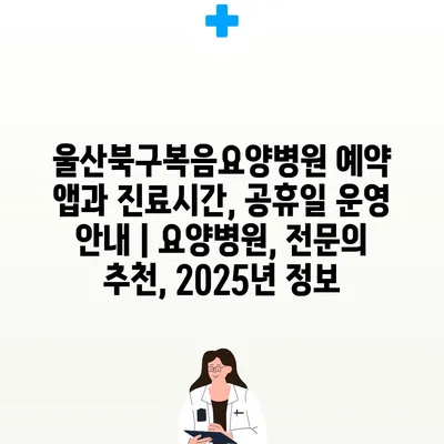 울산북구복음요양병원 예약 앱과 진료시간, 공휴일 운영 안내 | 요양병원, 전문의 추천, 2025년 정보
