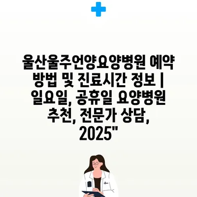 울산울주언양요양병원 예약 방법 및 진료시간 정보 | 일요일, 공휴일 요양병원 추천, 전문가 상담, 2025″ 에 대해 자주 묻는 질문 TOP 5