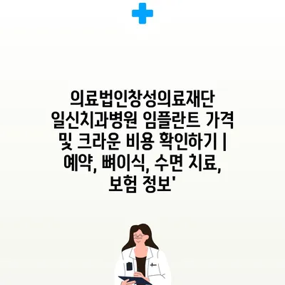 의료법인창성의료재단 일신치과병원 임플란트 가격 및 크라운 비용 확인하기 | 예약, 뼈이식, 수면 치료, 보험 정보에 대해 알아보겠습니다.