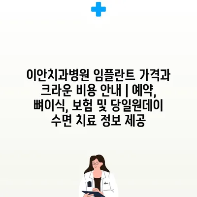 이안치과병원 임플란트 가격과 크라운 비용 안내 | 예약, 뼈이식, 보험 및 당일원데이 수면 치료 정보 제공