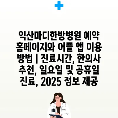 익산마디한방병원 예약 홈페이지와 어플 앱 이용 방법 | 진료시간, 한의사 추천, 일요일 및 공휴일 진료, 2025 정보 제공