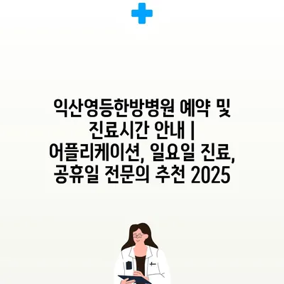 익산영등한방병원 예약 및 진료시간 안내 | 어플리케이션, 일요일 진료, 공휴일 전문의 추천 2025
