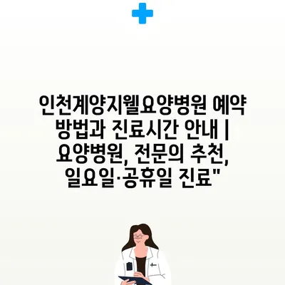 인천계양지웰요양병원 예약 방법과 진료시간 공지 | 요양병원, 전연락 추천, 일요일·공휴일 진료” 에 대해 자주 묻는 질문 TOP 5