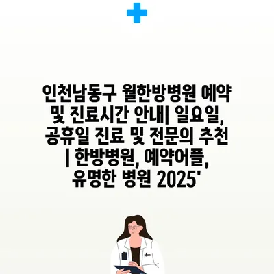 인천남동구 월한방병원 예약 및 진료시간 공지| 일요일, 공휴일 진료 및 전연락 추천 | 한방병원, 예약어플, 유명한 병원 2025′ 에 대해 자주 묻는 질문 TOP 5