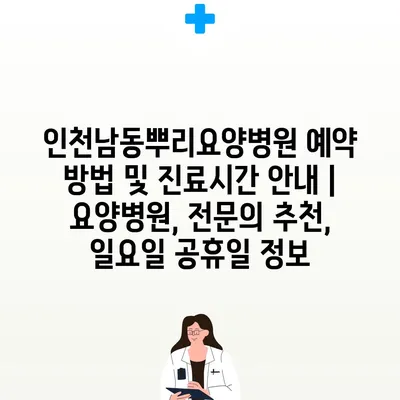 ✅ 인천남동뿌리요양병원의 예약 방법과 진료시간을 빠르게 알아보세요!
