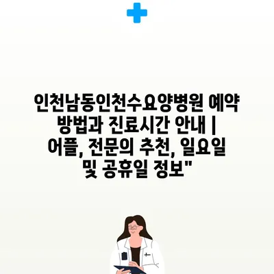 인천남동인천수요양병원 예약 방법과 진료시간 공지 | 어플, 전연락 추천, 일요일 및 공휴일 정보에 대해 자주 묻는 질문 TOP 5