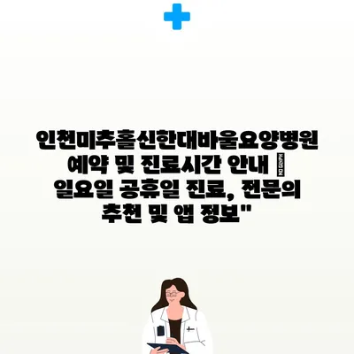 인천미추홀신한대바울요양병원 예약 및 진료시간 안내 | 일요일 공휴일 진료, 전문의 추천 및 앱 정보”