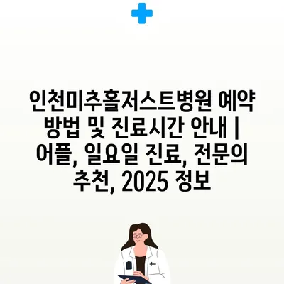 인천미추홀저스트병원 예약 방법 및 진료시간 공지 | 어플, 일요일 진료, 전연락 추천, 2025 정보 에 대해 자주 묻는 질문 TOP 5