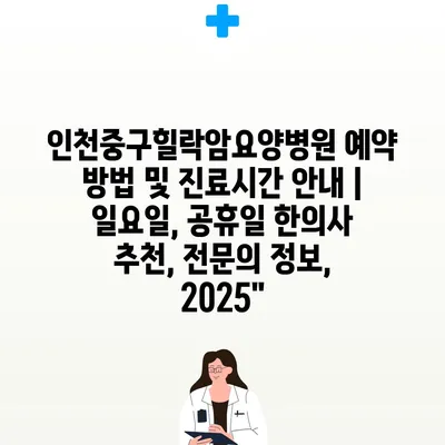 인천중구힐락암요양병원 예약 방법 및 진료시간 안내 | 일요일, 공휴일 한의사 추천, 전문의 정보, 2025″