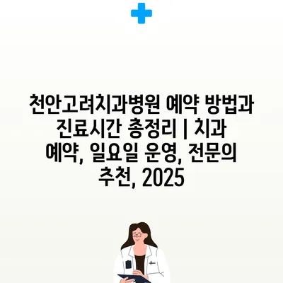 천안고려치과병원 예약 방법과 진료시간 총정리 | 치과 예약, 일요일 운영, 전문의 추천, 2025