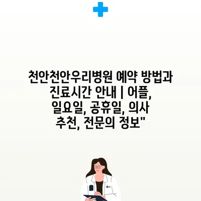✅ 천안우리병원의 예약 방법과 진료 시간을 자세히 알아보세요.