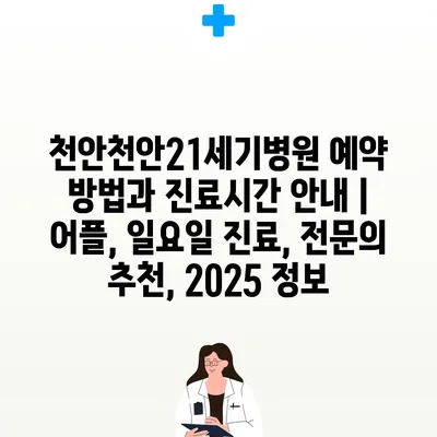 천안천안21세기병원 예약 방법과 진료시간 공지 | 어플, 일요일 진료, 전연락 추천, 2025 정보 에 대해 자주 묻는 질문 TOP 5