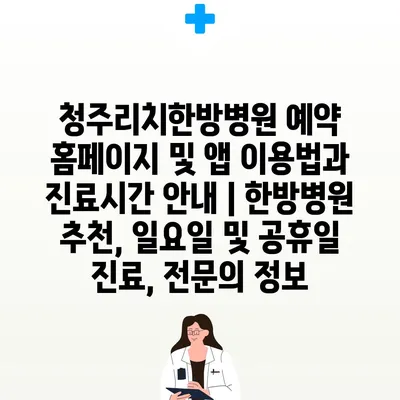 ✅ 청주리치한방병원의 예약 방법과 진료시간을 알아보세요.