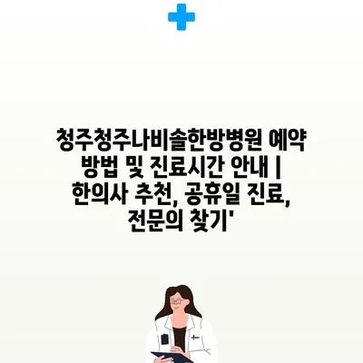 청주청주나비솔한방병원 예약 방법 및 진료시간 공지 | 한의사 추천, 공휴일 진료, 전연락 찾기