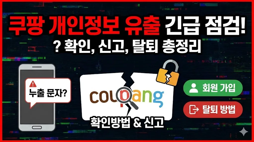 쿠팡 개인정보 누출 문자를 받으셨나요? 2025년 11월 약 3370만 개 계정의 개인정보가 유출되면서 많은 분들이 안내 문자를 받고 놀라셨을 것입니다. 이 글에서는 쿠팡에서 발송한 개인정보 누출 문자의 내용, 유출 여부 확인방법, 피해 신고 절차, 그리고 회원 가입 및 탈퇴 방법까지 상세히 안내해드리겠습니다.