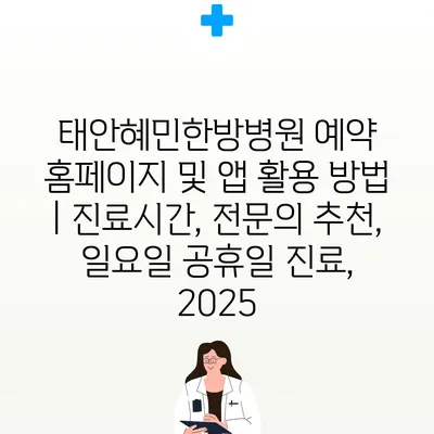 태안혜민한방병원 예약 홈페이지 및 앱 활용 방법 | 진료시간, 전문의 추천, 일요일 공휴일 진료, 2025