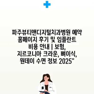 파주뷰티앤디지털치과병원 예약 홈페이지 후기 및 임플란트 비용 공지 | 보험, 지르코니아 크라운, 뼈이식, 원데이 수면 정보 2025에 대해 자주 묻는 질문 TOP 5