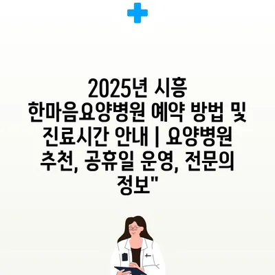 2025년 시흥 한마음요양병원 예약 방법 및 진료시간 공지 | 요양병원 추천, 공휴일 운영, 전연락 정보에 대해 자주 묻는 질문 TOP 5