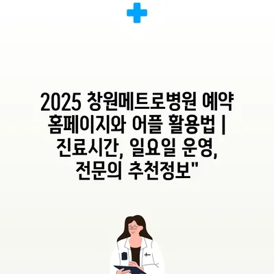 2025 창원메트로병원 예약 홈페이지와 어플 활용법 | 진료시간, 일요일 운영, 전연락 추천정보 에 대해 자주 묻는 질문 TOP 5